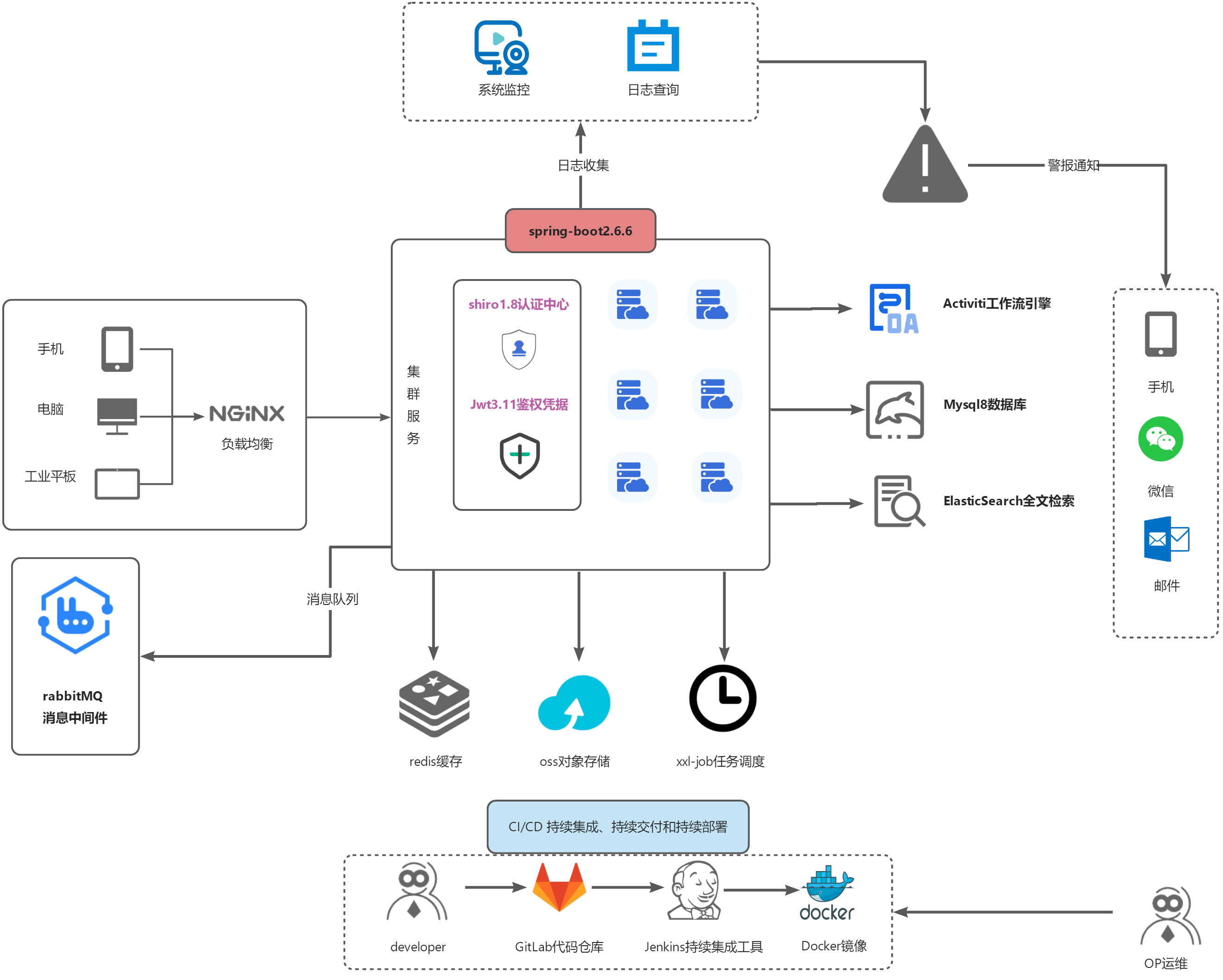 • 后端采用Spring Boot、Spring Security、Redis & Jwt。